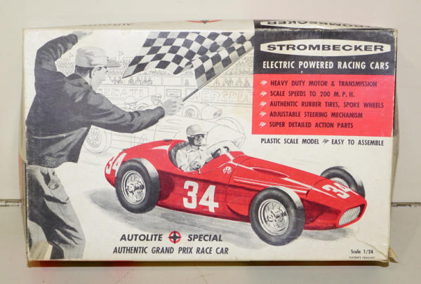 one car looks complete, one has some loose parts that are included, neat graphic box, box has some crushing and wear, box rates 8 condition
