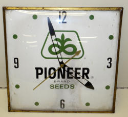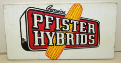 16.5"x34", poor condition, heavy fading and bent, very hard Pioneer sign to find, but condition is rough