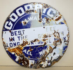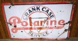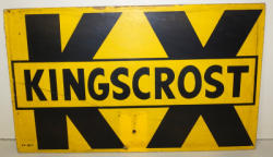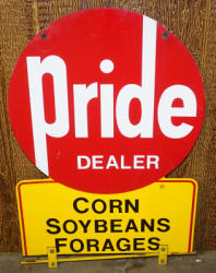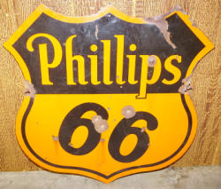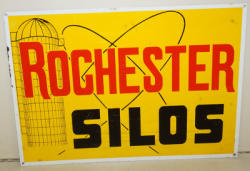 52"x46", has a couple of chips, but not pad, some scratches and scuffs; someone took reflective tape and outlined the logo, another sign with a little work would clean up and worth having restored; no shipping, pickup only
