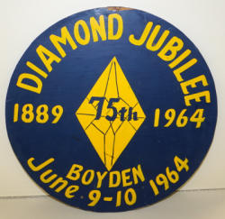 4' diam plywood, hand painted, but really nicely done, some scuffs and scrapes from storage, but nice, 2'x4's on the back to help hang; no shipping, pickup only