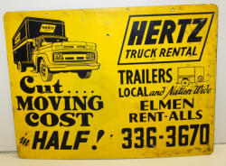 18"x24", neat graphics with a mid 1960's Chevy style truck, reverse side is a Home for Sale painted sign, has scuffs and wear