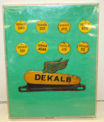 about 23"x19" with the stake, has heavy scuffs and scratches, reverse side has some paint loss, earlier version with the space in "De Kalb"