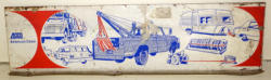 18"x24", neat graphics with a mid 1960's Chevy style truck, reverse side is a Home for Sale painted sign, has scuffs and wear