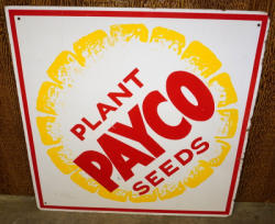 16.5"x34", poor condition, heavy fading and bent, very hard Pioneer sign to find, but condition is rough