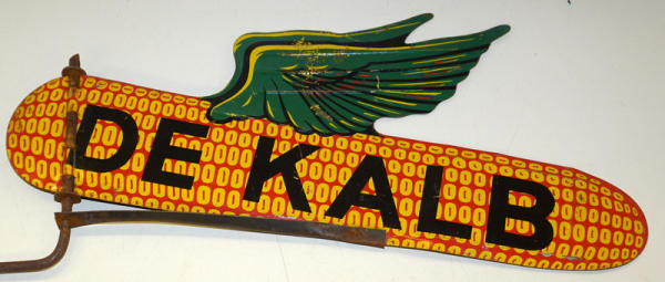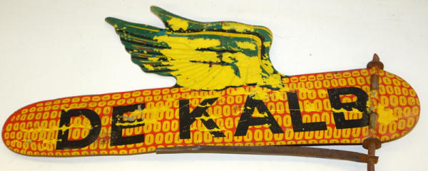 about 23"x19" with the stake, has heavy scuffs and scratches, reverse side has some paint loss, earlier version with the space in "De Kalb"
