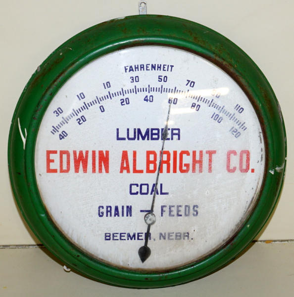19" across, porcelain face is nice, metal can has some old paint on it, shows some age, but a pretty rare large thermometer