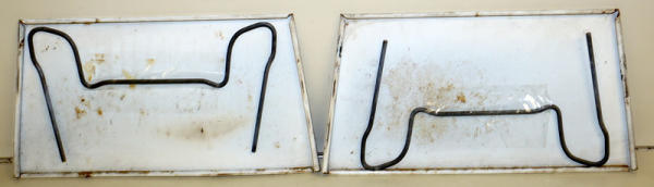 7"x14" each, has scuffs and scratches, includes the wire stands