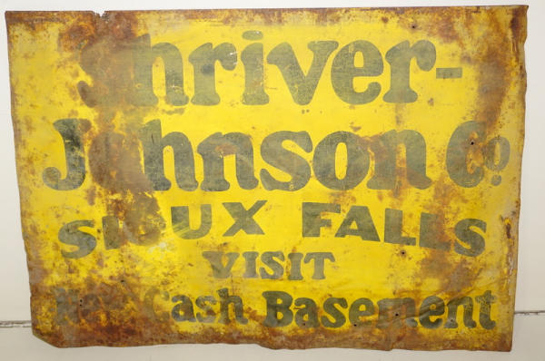 14"x20", rough, heavy patina, wrinkles and wear, but an early piece of Sioux Falls advertising