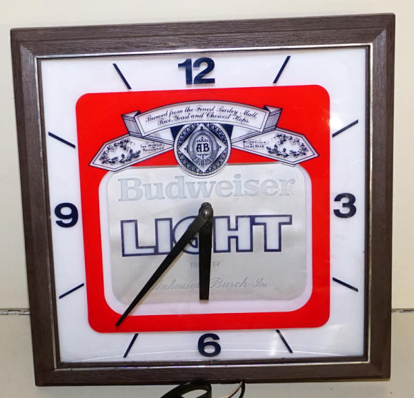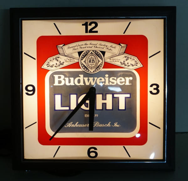 13"x13", works, pretty clean, Budweiser Light was only used one year before it went to Bud Light