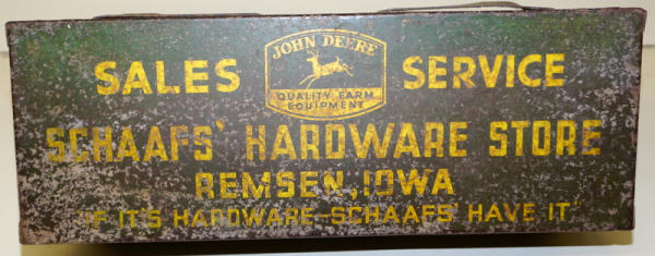 18"x7"x6", heavy wear, but lettering on top is decent, most of the green paint is gone