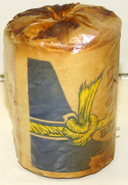 4" tall, 2.5" across, still sealed, but plastic has discolored with age, made in Mexico