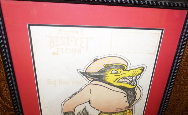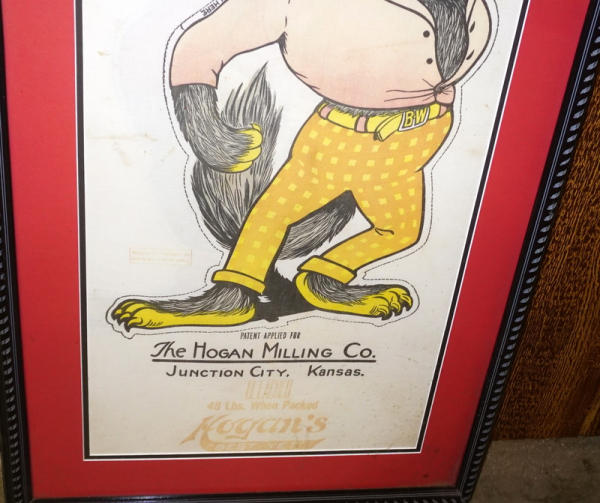34"x21", pro framed & matted, nice original sack that a mother could have cut out and made a doll for her kids, never seen one of these before, some fading, but unique
