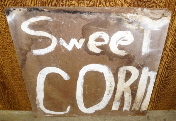 24"x24", has been painted on the back side "Sweet Corn", otherwise a nice original with some light edge wear