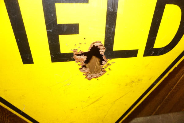 34"x34", has shotgun blast in the middle, used