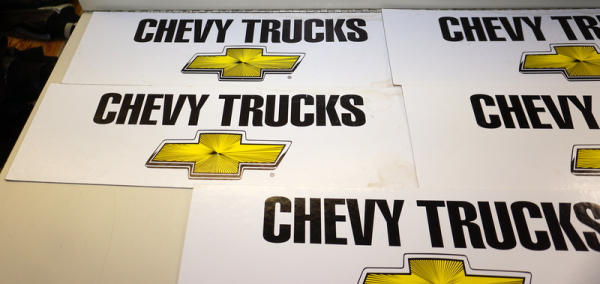 each 7"x24", double sided, 2 different logos, some wear, all to go