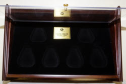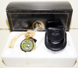 2.25" across, high-quality, mint in satin lined box, has the modern logo