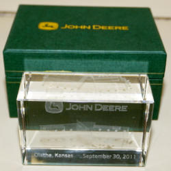#27 - JD 2007 Laser Etched Paperweight w/ Combine "Delivering the Ultimate"-- Cincinnati, OH Dealer meeting