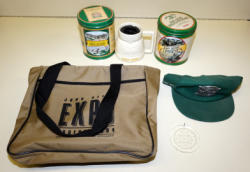 #306 - Box Lot of JD Items---Combine Tins, Expo Bag, Gold Level Mug & more