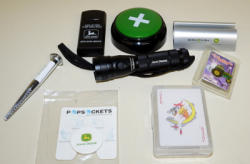 #344 - Lot of JD Smalls--Cotton Picker Spindle, Pop Sockets, Flashlight & misc. items