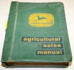 #356 - JD Parts Catalogs in 4-leg Ag Sales Manual Binder--Blades, forklift, post hole diggers & more