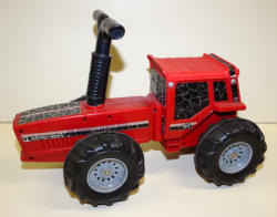 Version with rubber wheels, however, looks like it sat in a window and paint is severely discolored, would be a good one to customize into a "weathered" tractor