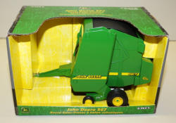 #523 - Box Lot of Misc Toys--1466 Model Kit, 2 Scale Models Mowers & 1/32nd Baler
