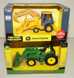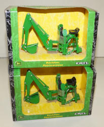#498 - (2x) 1/32nd JD Plastic Play Toys--Loader/Backhoe & Utility w/ Loader