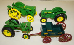 #520 - (4x) JD Toys--D on steel, BR rubber, L, & Buckboard