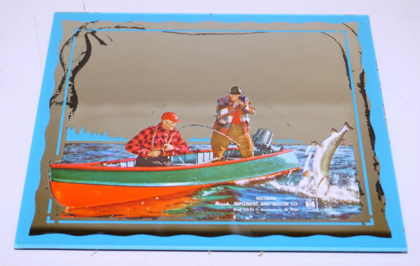 8"x9", some age spots on the edges of the mirror, good color and graphics