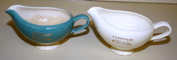 Blue one has small chip on the base, white one has a chip on the spout, 2x the money