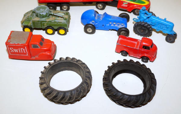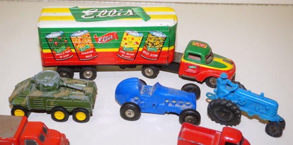 all have play wear, Tin Semi has good color, but missing back door and has rust and wear, all to go