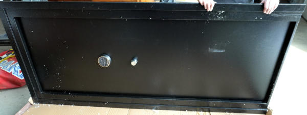 NO SHIPPING, local pickup only; this is a brand new door, has never been installed. In-Swing door measures 78-1/8"x30" and entire frame is 83-1/2" x 36"; includes tool kit and manual for installation. Is currently laying flat on a pallet, buyer please contact Girard Auction at least a day in advance before coming to pickup, we can load with forks into the back of a pickup or on a trailer for hauling; has digital key pad; black color;