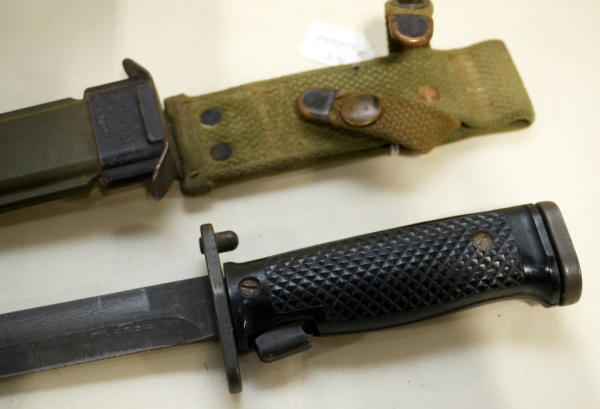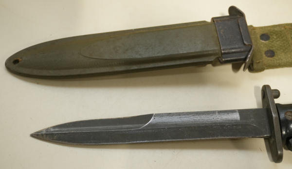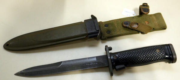 very nice condition; 6.75" blade; plastic checkered handle; sheath marked US M8A1