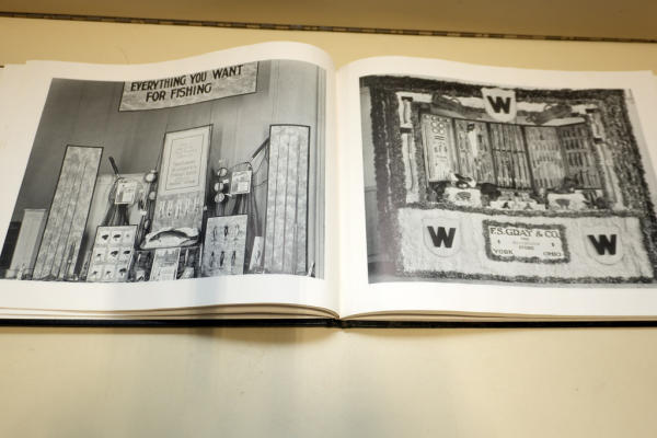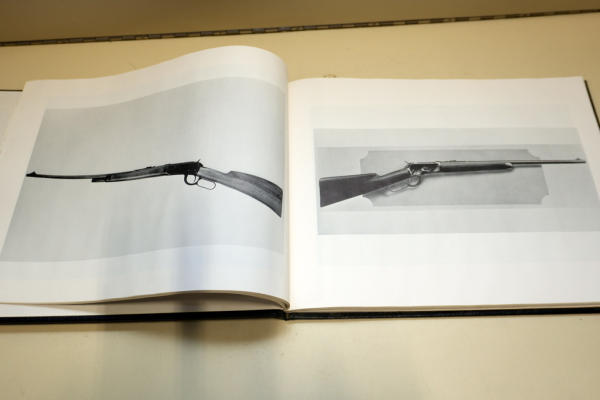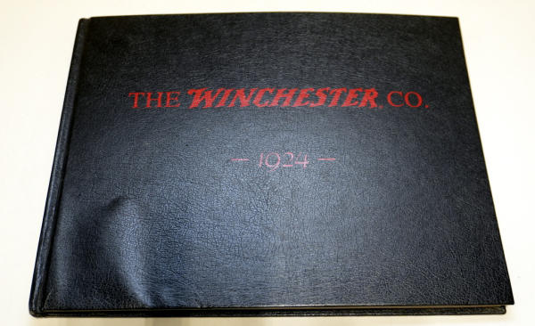 has some slight water damage to the cover; really nice pictorial of different Winchester displays, scenes & guns; and several of the factory; no numbered pages but probably 100+ total