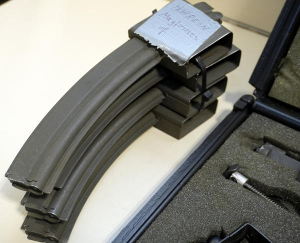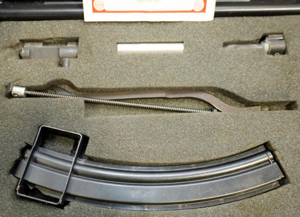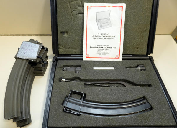 converts to 22LR; includes 5-magazines; paperwork; plastic case;