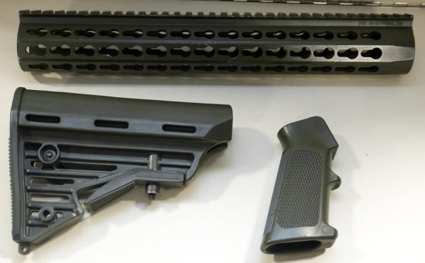 includes a handguard, pistol grip and butt stock; all used but nice condition; sell for one money
