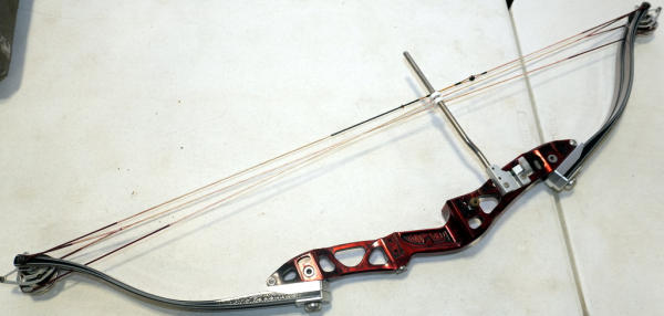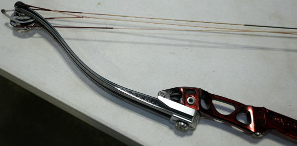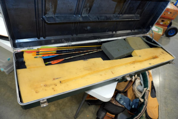 very nice clean used bow; 49" long; includes an older plastic carry case and a few arrows; looks like it should be in great working order