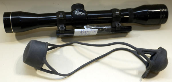 rings and Marlin 336 base attached; standard duplex reticle; bikini rubber scope cover; gloss finish; 11.75"; used
