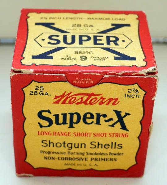 25 rounds; box is very nice w/some minor wear to edges; bright red color box; 2-7/8" 9-Chill Shot; mid 1930's to 41; great shape