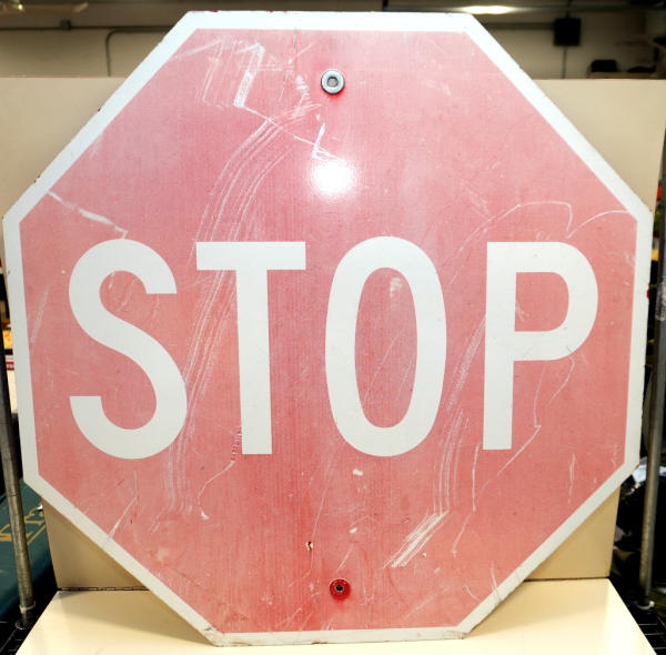 original stop sign; 30"x30"; faded and some scratches
