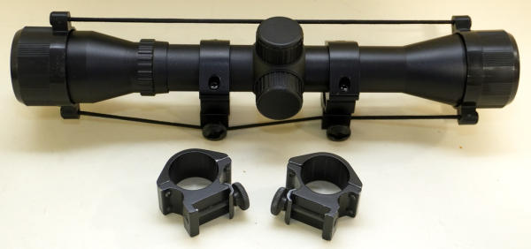 no maker on the scope or rings; all very nice like new condition; sell for one money; scope is 10" long
