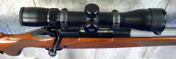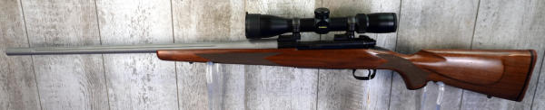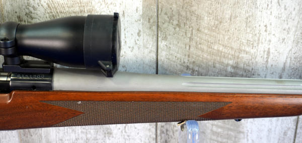 24" Fluted Stainless Barrel marked N.R.A. 25-06 & no sights; smooth action; stock has a couple minor field marks & nice checkering w/rubber butt pad, overall very clean; Scheels Paragon Hunter 3-12x42mm Scope w/Front flip up cap; clean bore; USA; SN#G151200; A-334