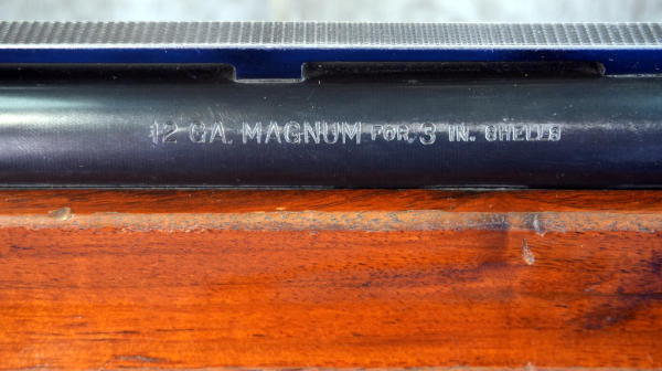 28" VR-BBL w/hy-vis front sight; nice wood w/a few field marks and rubber recoil pad; bluing on receiver is faded in spots and has some scratches on top left side mainly; scratches on BBL; 3"; FC; clean bore; USA: SN#L115863M; A-322