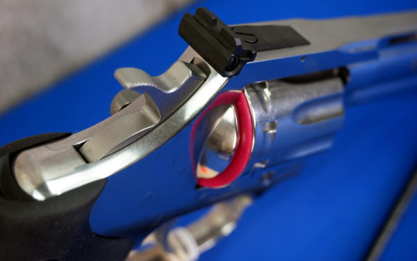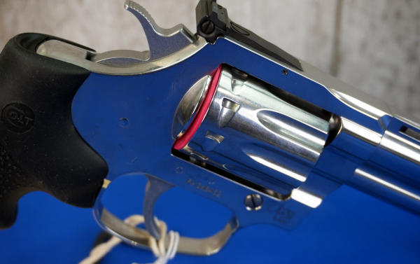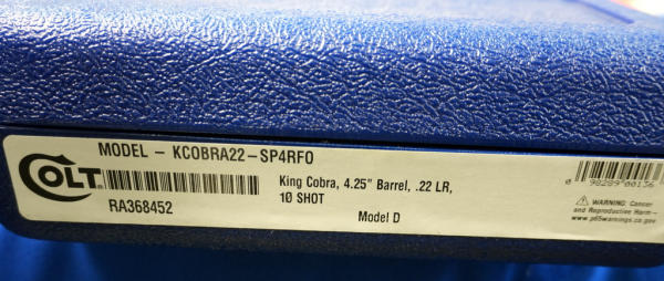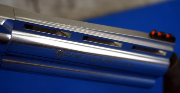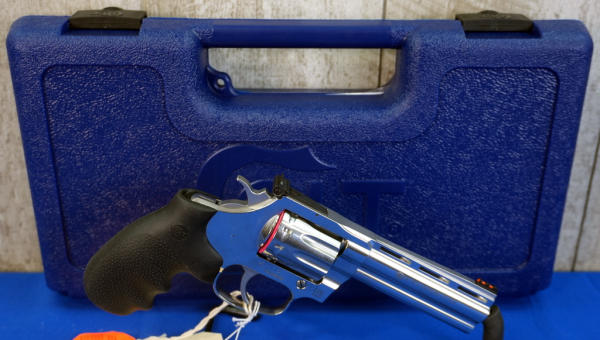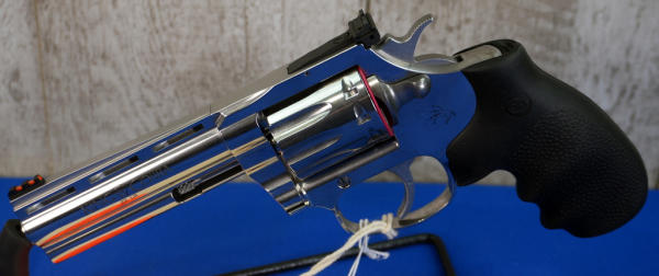 4.25" VR-Stainless Barrel w/hy-vis front sight & rear adjustable; 10-shot swing-out cylinder; finger groove rubber grips; factory hard case; mint & unfired; USA; SN#RA368452; A-296