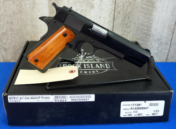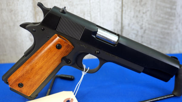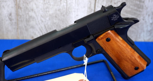 5" BBL; fixed sights; smooth wood grips; Mint & unfired; 3-magazines; factory box & soft zippered case; Philippines; SN#RIA2928947; A-347
