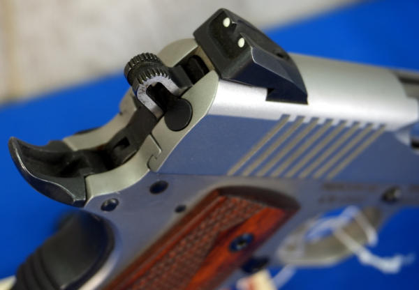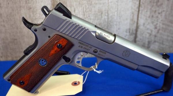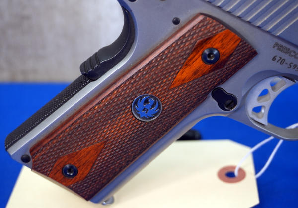 5" Stainless Barrel; wood checkered factory grips; night sights; 2-magazines; factory box & soft zippered case; mint & unfired; USA; SN#670-59587; A-341