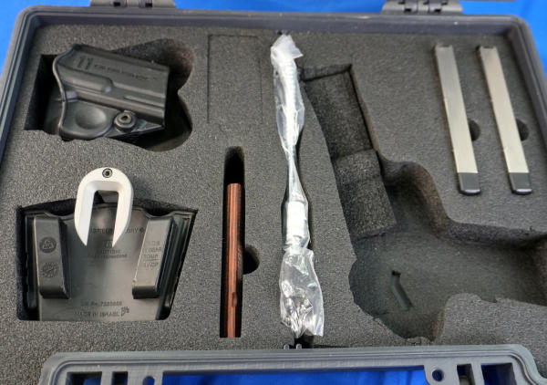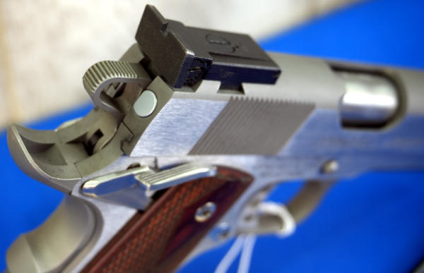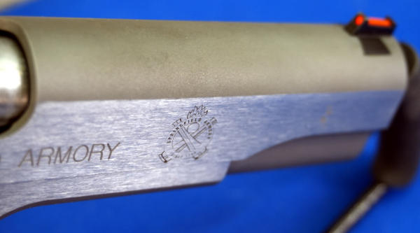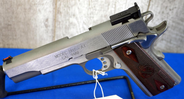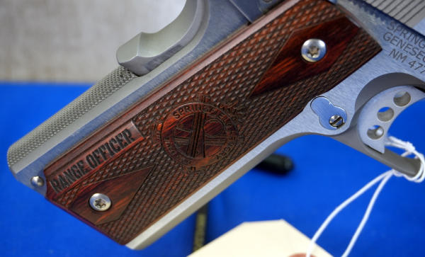 5" Stainless barrel; hy-vis front sight w/rear adjustable; wood checkered grips w/Sprg. Logo and "Range Officer"; factory hard case w/2-magazines and accessories; looks like new condition; USA; SN#NM477608; A-341