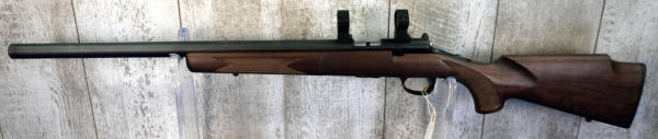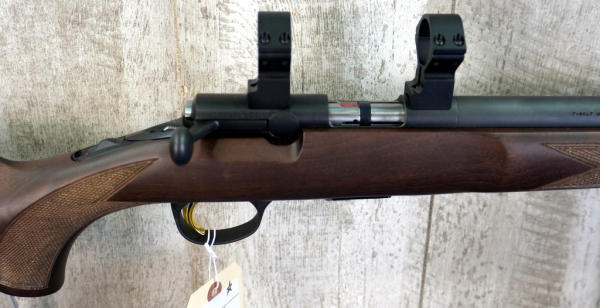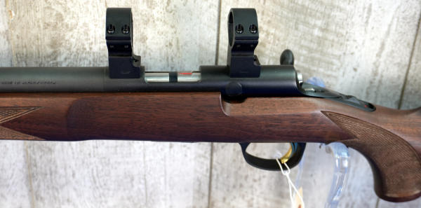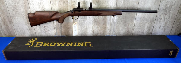 20" Varmint BBL w/no sights; Talley Rings; mint & unfired; removable magazine; gold trigger; wood stock w/checkering; plastic butt plate; threaded muzzle; factory box; Japan; SN#02050YW253; A-343