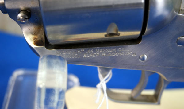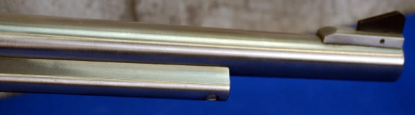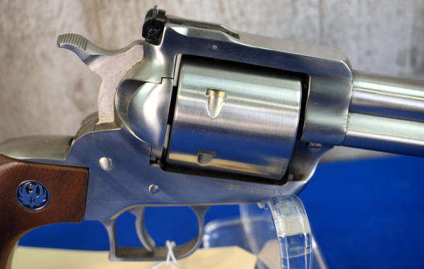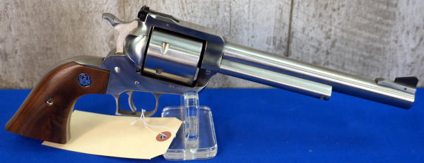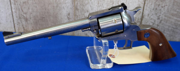 7.5" stainless barrel; fixed ramp front sight & rear adjustable; 6-shot fixed non-fluted cylinder; factory smooth wood grips; has been fired but overall very clean; USA; SN#84-66735; A-275