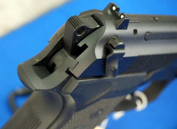 4.25" BBL; mint & unfired; plastic checkered grips; night sights; two magazines; factory box & hard case; Italy; SN#E85122Z; A-318